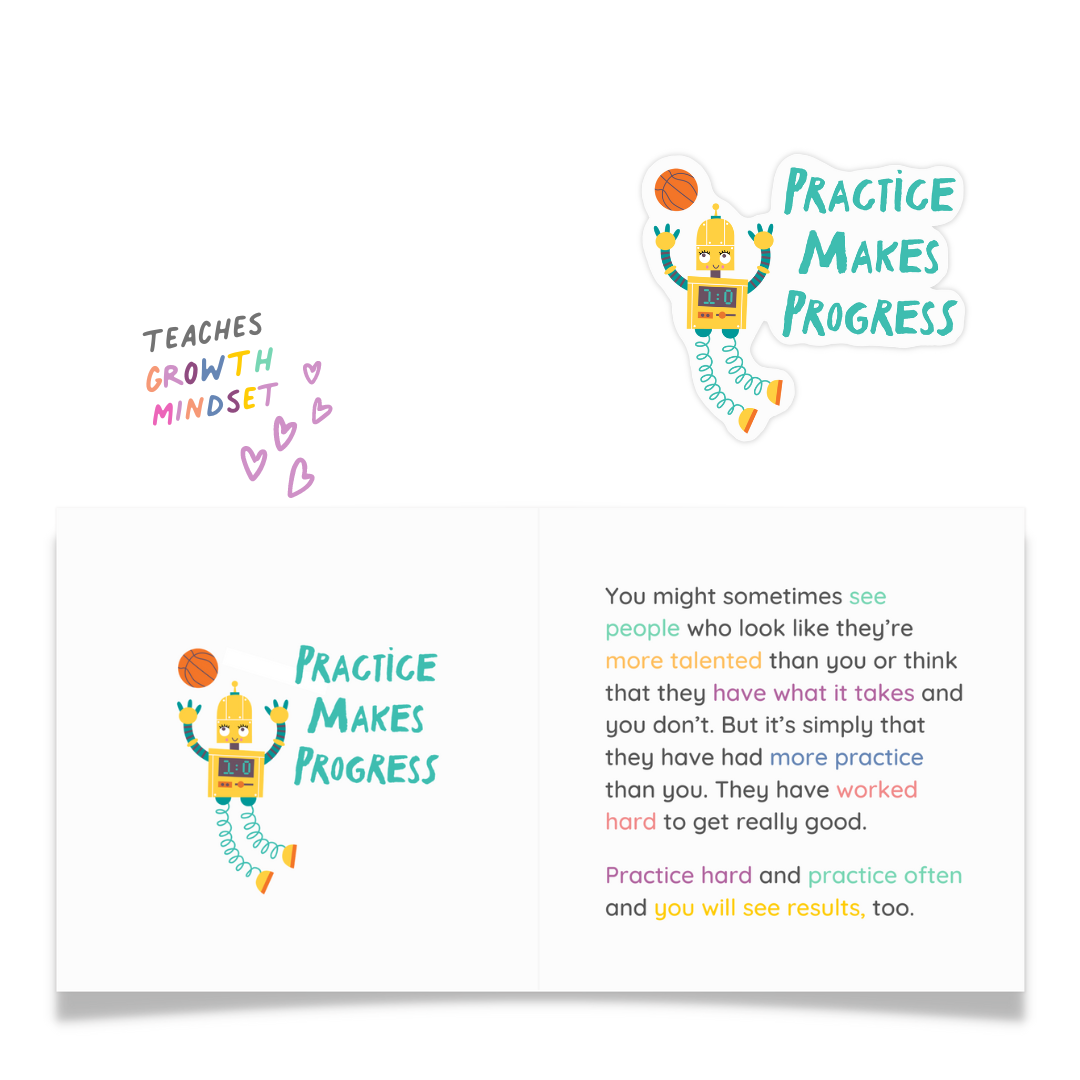The Practice Makes Progress Sticker and Card Set is a great way to teach the child in your life about growth mindset.